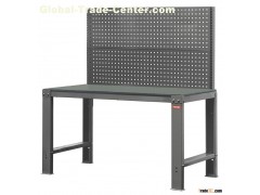 Heavy-duty workbench which is available to with peg board style, hanger rack, plug, and light system.